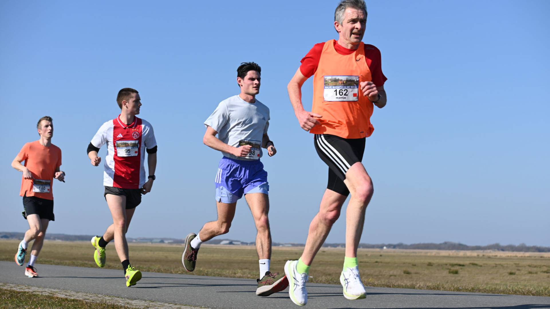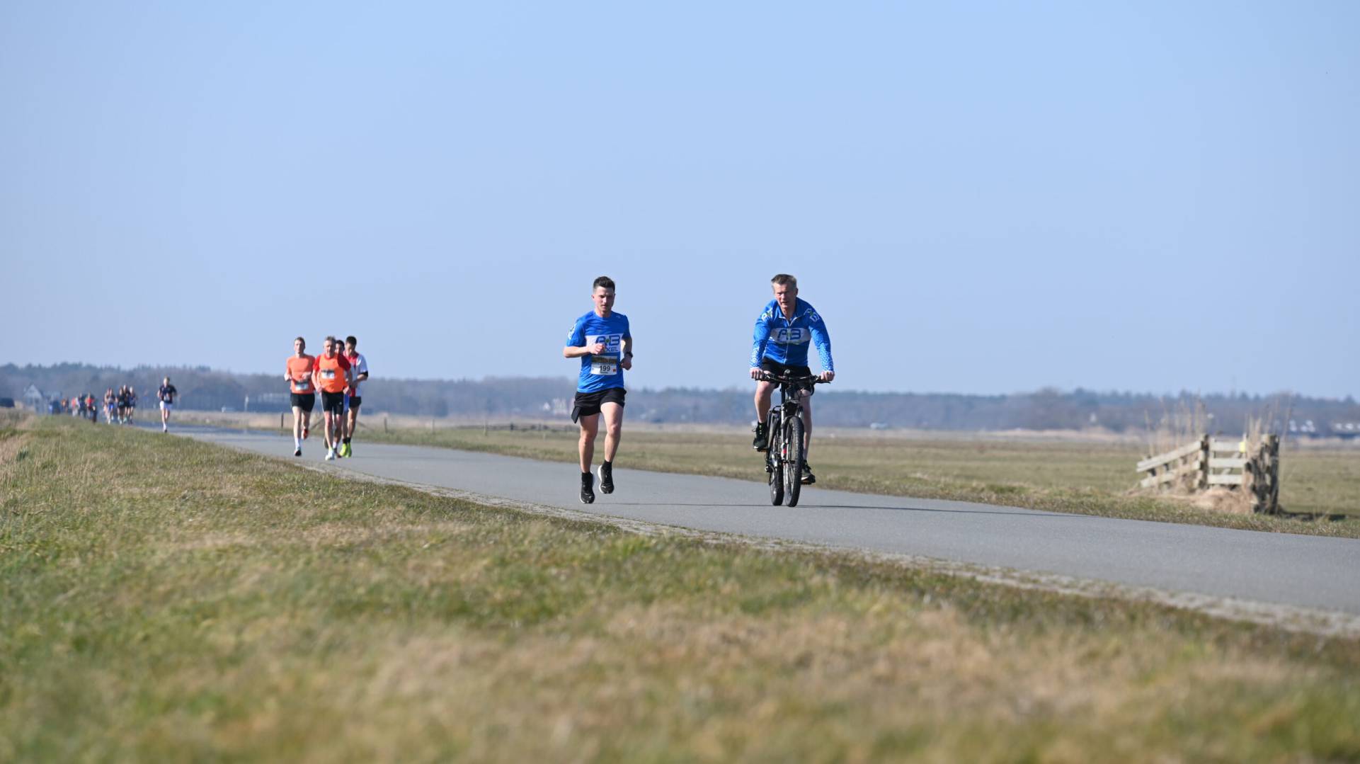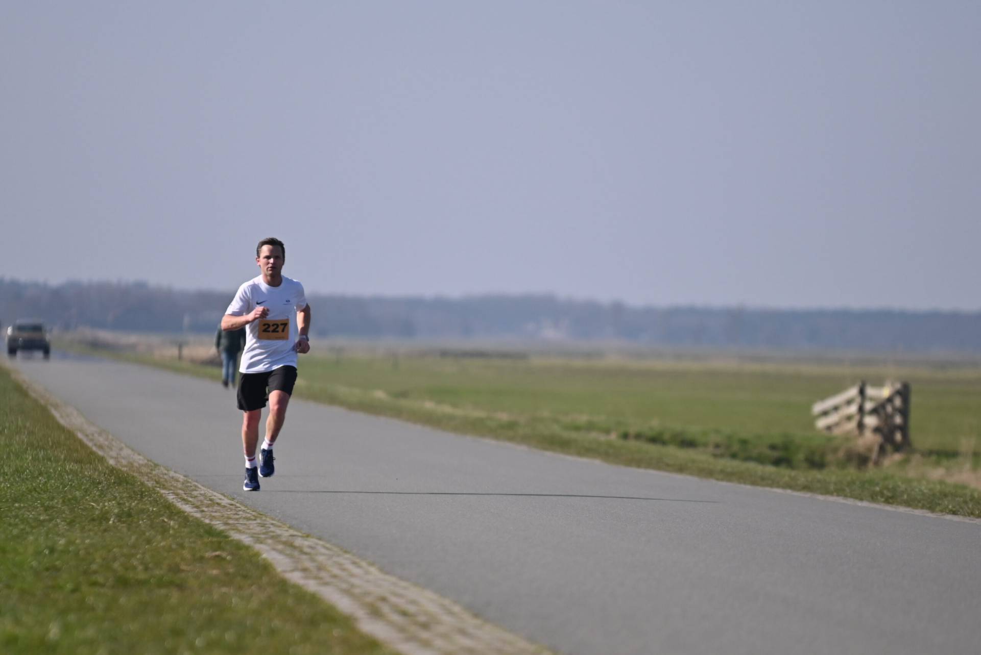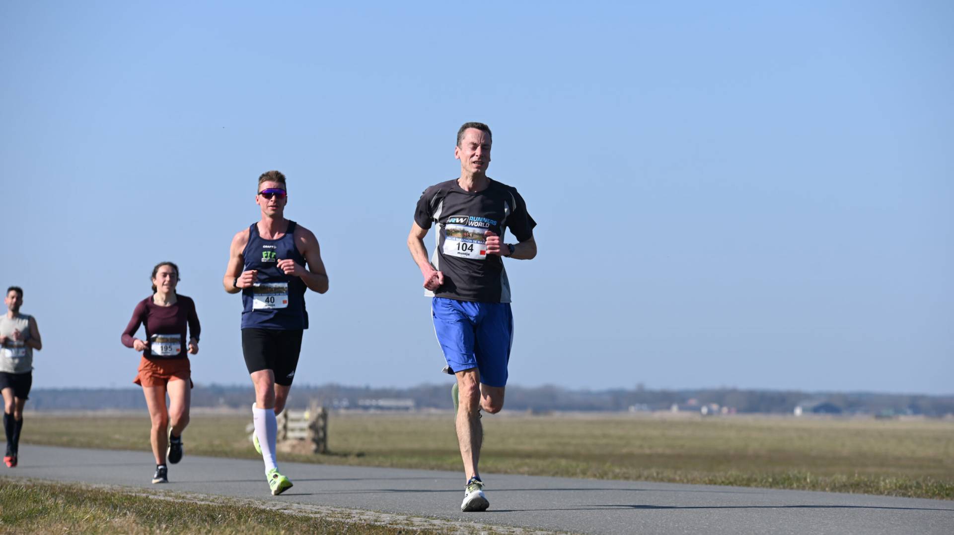 Is het nu klimaatverandering of is het gewoon een veel voorkomendheid, dat het op 8 maart zo warm kan zijn. De KNMI meldde het ene warmterecord van maart na het andere. Het sneuvelde drie dagen achterelkaar. Zaterdag was dus een warme dag ook op Texel. Het Kooypunt in Den Helder tikte 16.4 graden aan en de oostelijke wind en de zon maakte de gevoelstemperatuur nog iets hoger. De deelnemers hadden het zwaar met deze omstandigheden. De weken ervoor nog getraind in de kou, nu kon de korte broek aan en met een loopshirt, was je meer dan voldoende beschermt. Atleten, die meer aan hadden, baadden zich in het zweet. De drinkposten hadden het druk en het water was niet aan te slepen. De polder Waalenburg heeft genoeg.